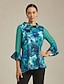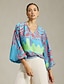 chemisier décontracté à col en V et manches cloches à imprimé cachemire