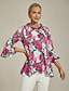Pumpkin Print Stand Collar Pleated Pullover Shirt