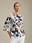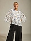 Satin Abstract Floral Stand Collar Puff Sleeve Shirt