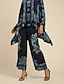 Modal Flare Cuff Blouse & Chiffon Pants Set Flare Cuff Modal Blouse Chiffon Pants Set