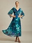 Vestido de coquetel feminino para convidados de casamento, chiffon, liso, com babados, torcido, elegante, maxi vestido de verão, decote em v, comprimento 3/4, manga