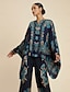 Abstract Print Satin Dolman Sleeve V Neck Maxi Dress