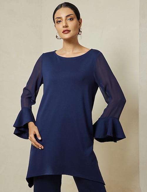 Modal Flare Cuff Blouse & Chiffon Pants Set