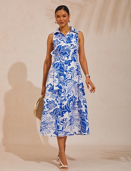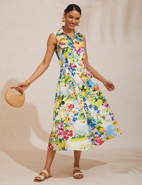 Stylish Multicolor Print Cotton Linen Tea Dress