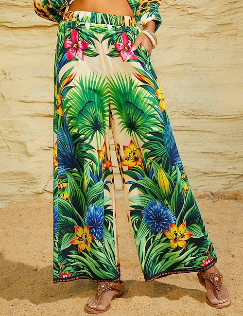 Tropical Temptation Flowy Chiffon Wide Leg Pants