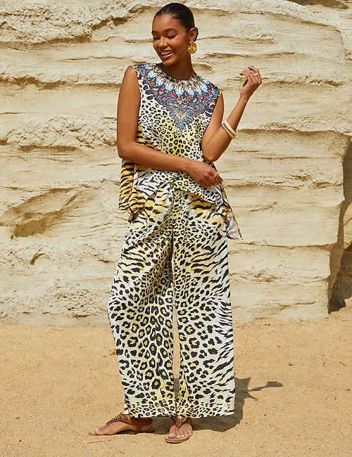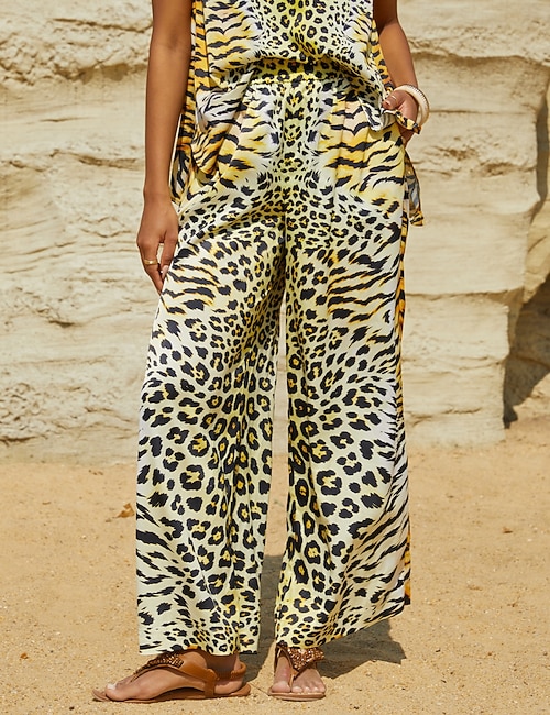 Gradient Leopard Chiffon Elegant Jumpsuit