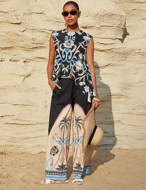 Linen Like Ocean Prints Two-Piece Set