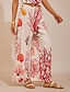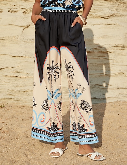 Satin Loose Wide Leg Vacation Artistic/ Retro Printing Causal Pants