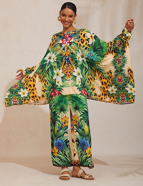 Mallorca Blossom Silky Satin Dolman Sleeve Top