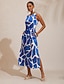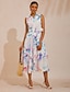 Satin Geometric Sleeveless Midi Dress