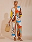 Geometric Color Block Satin Maxi Dress