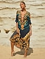 Boho Paisley Print Midi V-Neck Chiffon Kaftan