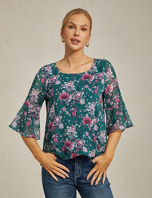 Chiffon Casual Magyar Sleeve Deep V Blouse