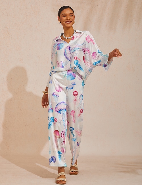 Ethereal Jellyfish Drift Silky Satin Pants