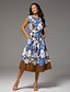 Loose Floral Printing Fall Crew Neck Elegant Dress