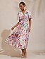 Chiffon Ethnic Floral Print Half Sleeve V Neck Midi Dress
