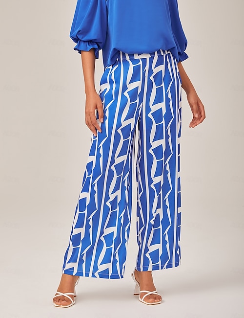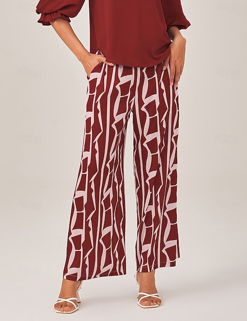 Geometric Print Elastic Waist Wide Leg Pants
