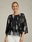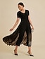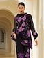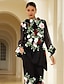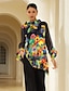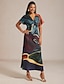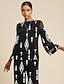 SEO Französisch Kurztitel Damen Freizeitkleid Druckkleid Grafik Farbblock Rüsche Off Shoulder Maxikleid Mode Modern Outdoor Täglich 3 4 Ärmel Lockerer Sitz Schwarz Herbst Winter S M L XL 2XL