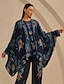 Tencel Chiffon Floral Print V Neck Jumpsuit