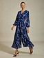 Printed Chiffon V Neck Wide Leg Jumpsuit