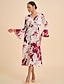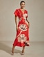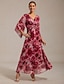 Abstract Satin Dolman Sleeve V Neck Waist Tie Maxi Dress