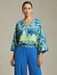 Paisley Crew Neck Bell Sleeves Layered Blouse
