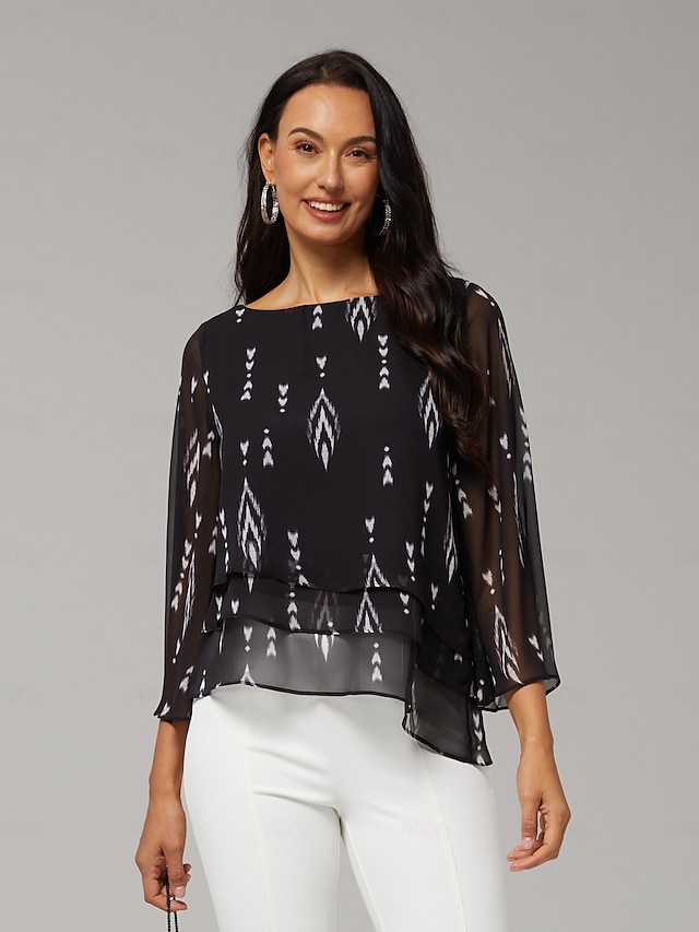 Bluse Chiffon bedruckter Stoff Frühling Herbst Reise Urlaub