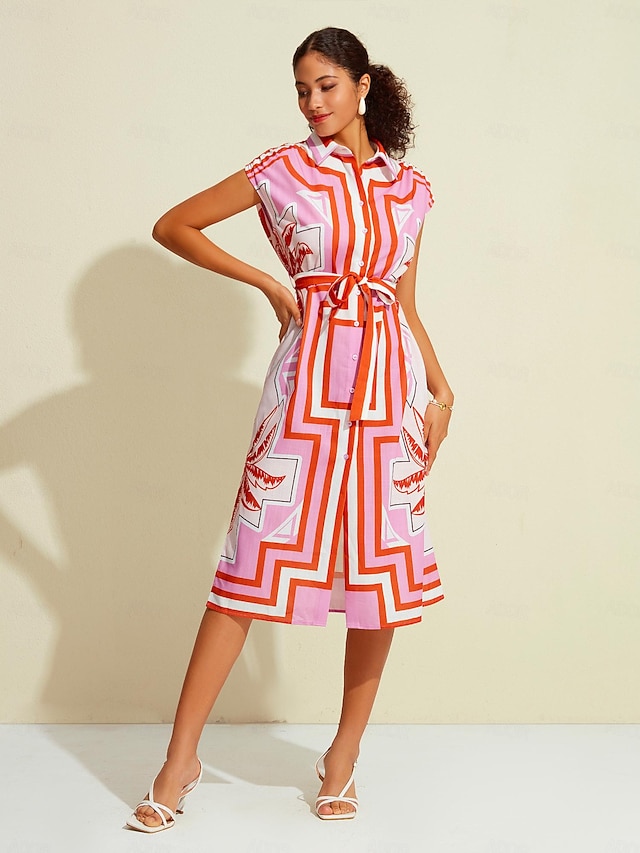 Tropical Belted Raglan Sleeve Knee Length Dress#16609370