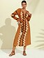 Folk Print Brick Red Half Sleeve V Neck Midi Dress