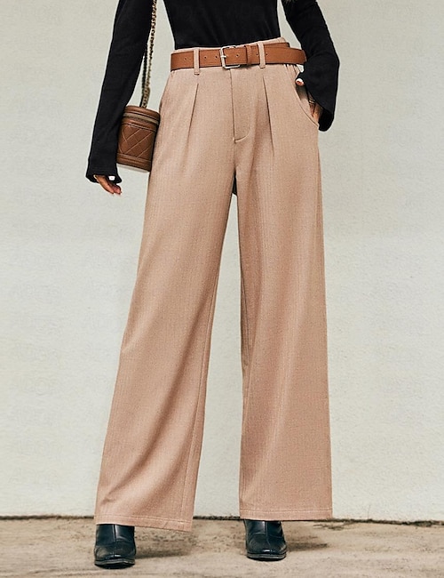 Elegant Wide Leg Full Length Flap Pocket Pants
