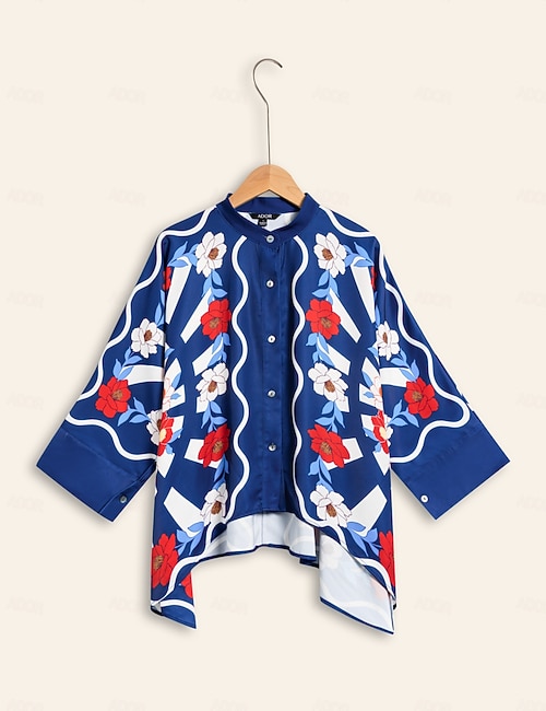 Satin Loose Wide Leg Vacation Artistic/ Retro Printing Causal Pants