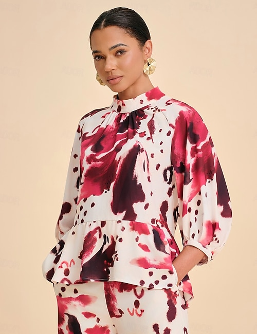 Satin Geometric Print Relaxed Elasticity Straight Pants