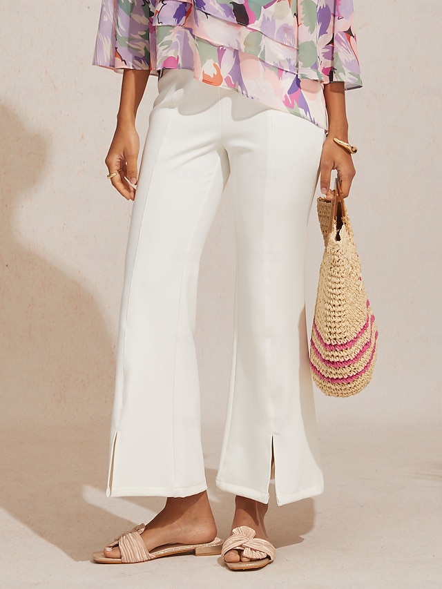 Elastic Waist; Zipper; Slit; Flared Leg Silhouette