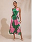 V-neck;Dolman Sleeves;Curved Hem;High-Low Hem;Geometric Pattern;Contrast Color;