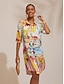 Scenic Floral Chiffon Dolman Short Shirt#17946424