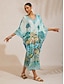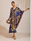 V-Neck; Elastic Ruched; Batwing Sleeve; Vintage Patchwork Motif