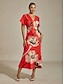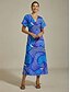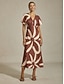 Abstract Satin Dolman Sleeve Maxi Dress#14249707