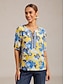 Ideal for those who crave easy elegance—this yellow floral top, with raglan sleeves, ruched details, and a tie-front accent, marries comfort and polish, perfect for lazy brunches or sunny getaways.