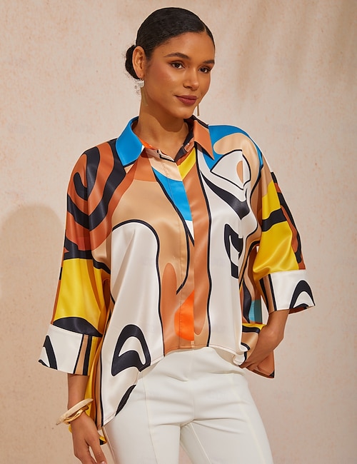 Graphic Print Chiffon Magyar Sleeve Shirt