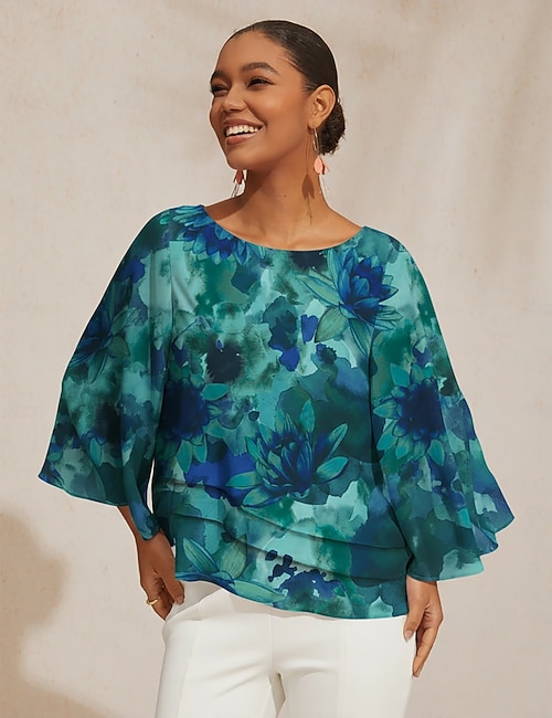Floral Loose 3 4 Sleeve Blouse