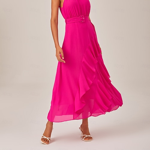 Plain Chiffon Ruffle Twisted Maxi Dress