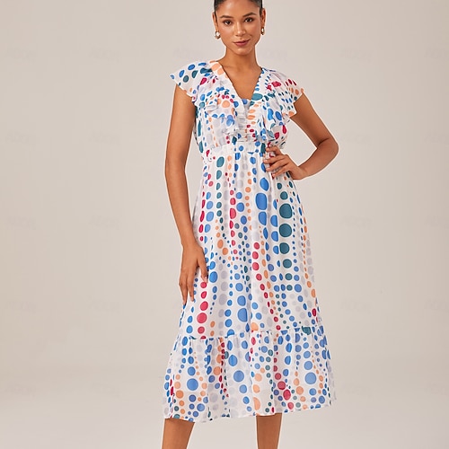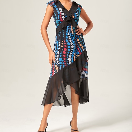 Vestido midi elegante de gasa con capas para invitados a bodas de verano