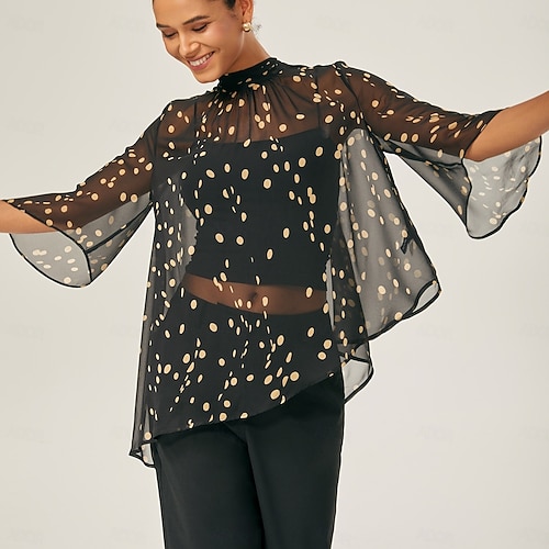 Caftán con mangas dolman de gasa fluida con forma de corazón de león para dama