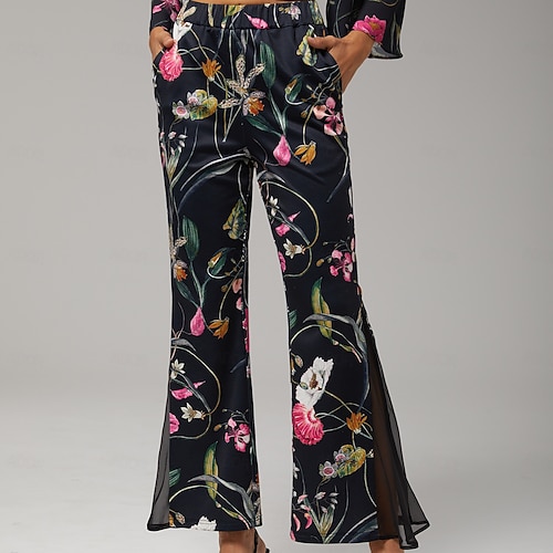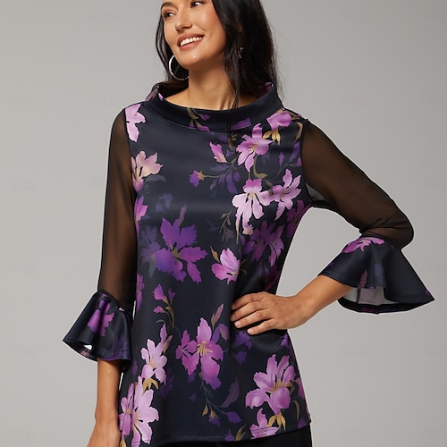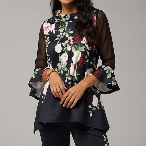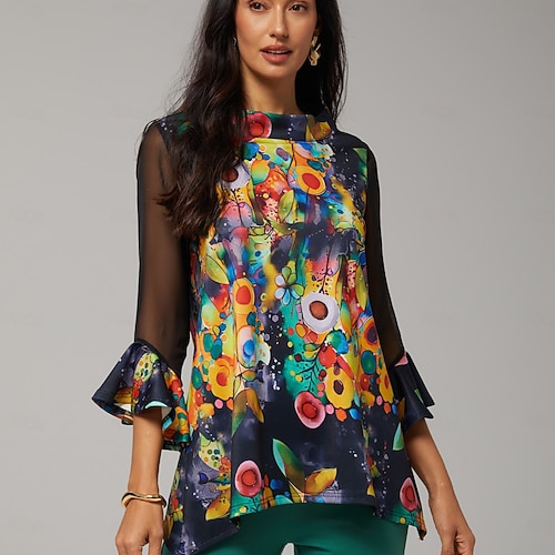 Blusa de manga dolman asimétrica de gasa fluida con flores de primavera