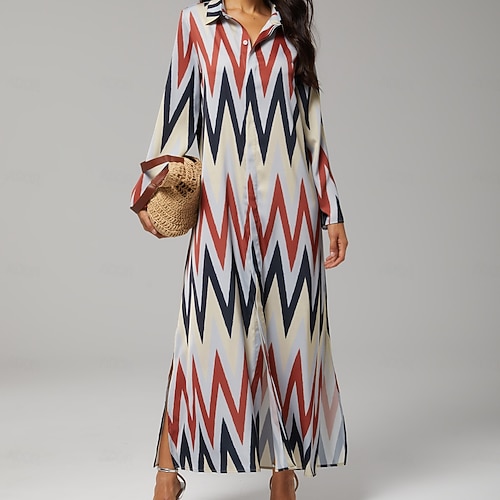 Vestido Maxi de Mujer con Estampado Gráfico y Fruncido