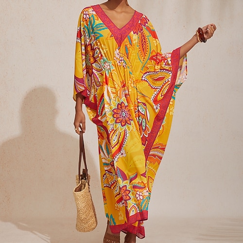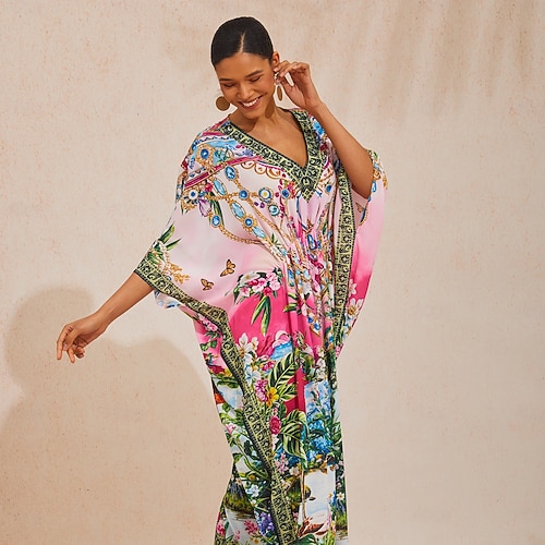 Caftán fluido de gasa con diseño de diamantes para fiesta en la jungla rosa