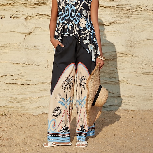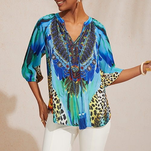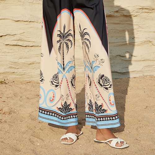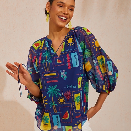 Blusa de gasa fluida con estampado floral escénico de Santorini para el verano