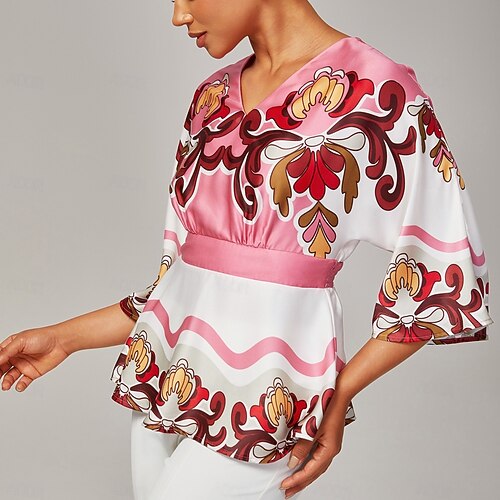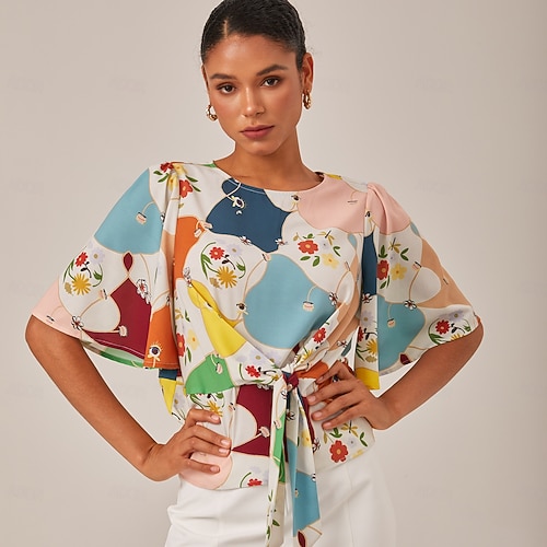 Floral Raglan Sleeve Adjustable Waist Rayon Shirt Dress