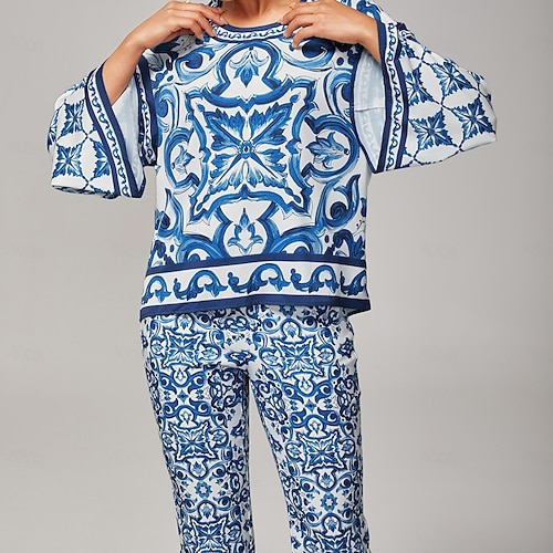 Vestido largo vaporoso con estampado de lino y jardín de cítricos navideños