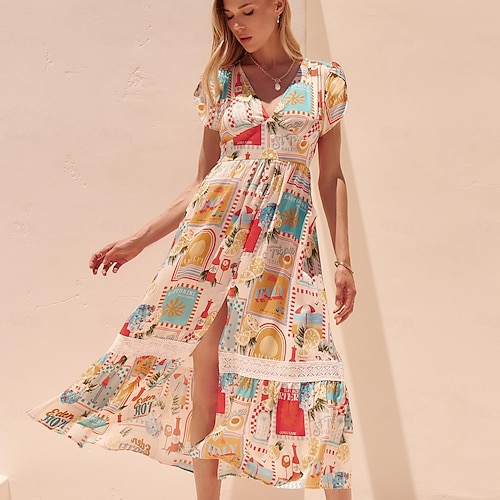 Women's Elegant V neck Floral Dress